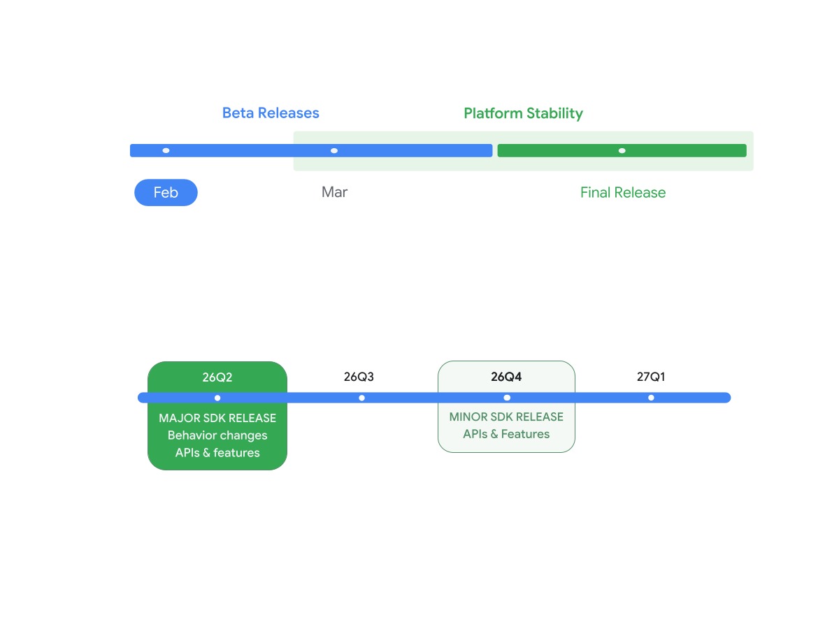 تم إطلاق النسخة التجريبية الأولى (Beta) من Android 17 في منتصف فبراير 2026، على أن تتبعها إصدارات تجريبية أخرى خلال الأشهر المقبلة. ووفقا لما أعلنته Google، من المتوقع أن يصل النظام إلى مرحلة الاستقرار خلال الربع الثاني من عام 2026.
