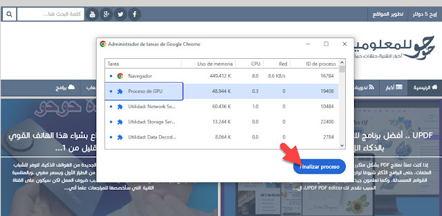 يحتوي غوغل كروم على مدير المهام المدمج، الذي يمكن الوصول إليه بسهولة عبر الضغط على Shift + Esc. من خلال هذا المدير، يمكنك مراقبة العمليات النشطة ومعرفة أيها يستهلك أكبر قدر من موارد الجهاز، ومن ثم إغلاق العمليات الثقيلة لتحرير الذاكرة وتحسين سرعة التصفح.